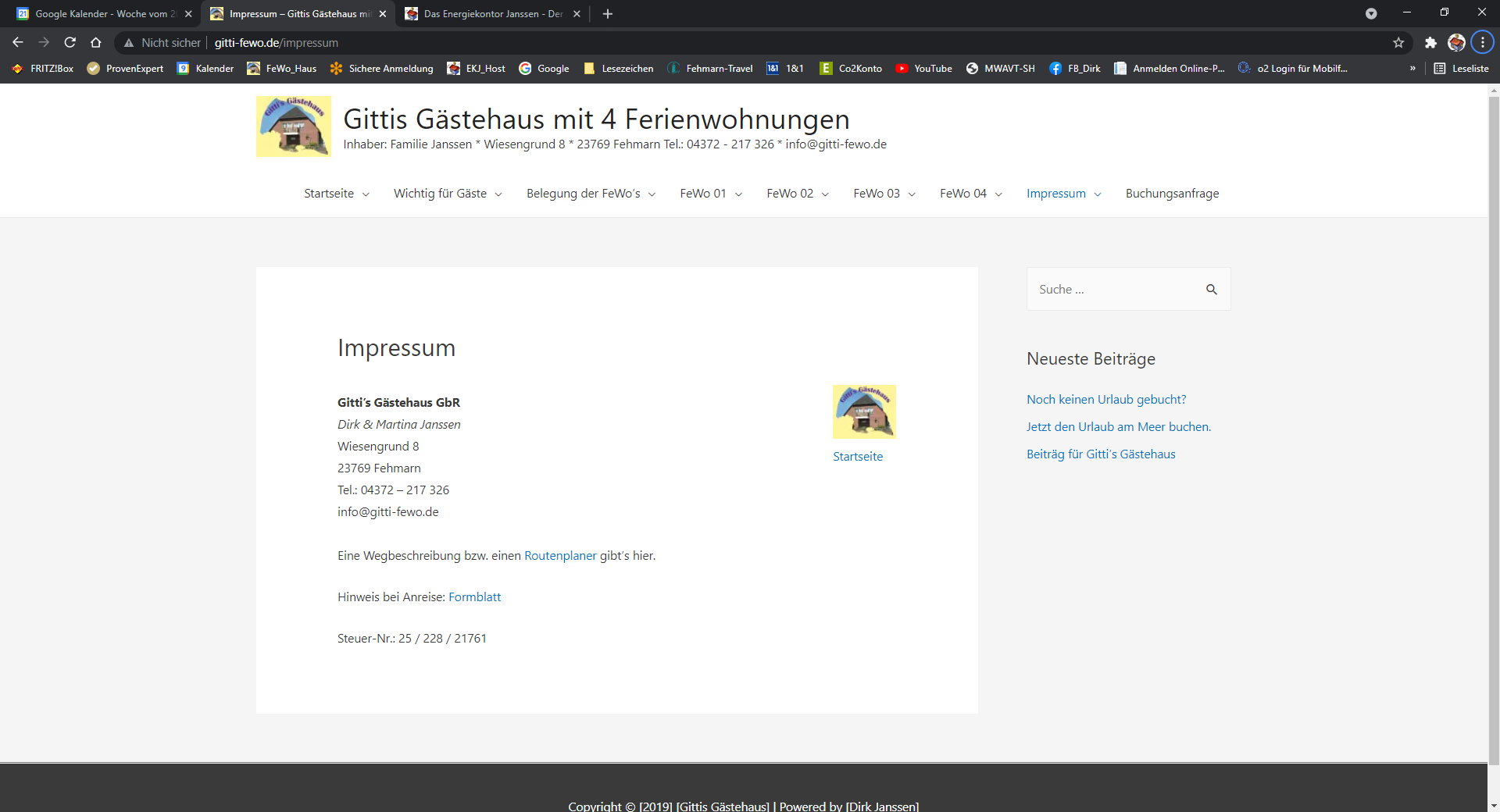 D. & M. Janssen * Wiesengrund 8 * 23769 Fehmarn * Tel.: 04372 – 217 326 * info@gitti-fewo.de